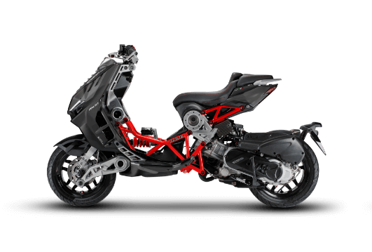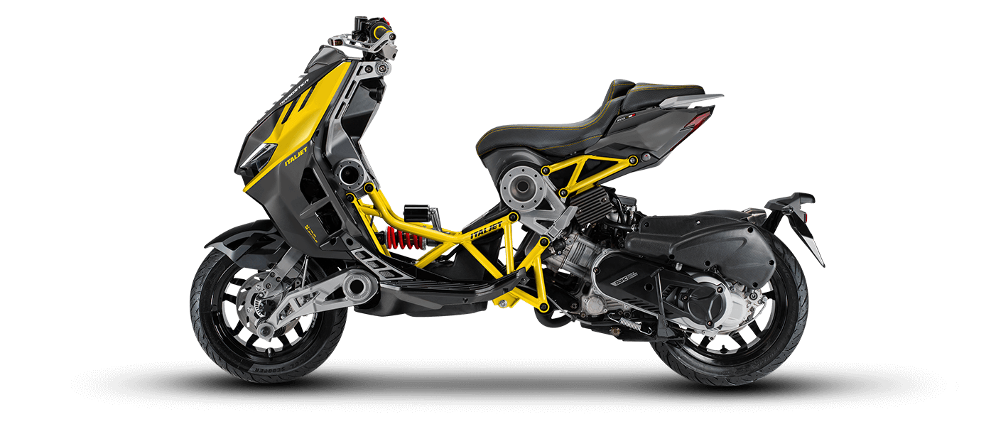 - FRONT SUSPENSION: I.S.S. single-arm and hydro-pneumatic adjustable shock absorber